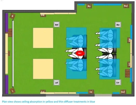 - Diffusion in the rearward area of the ceiling and overhead the listening area can be beneficial.
