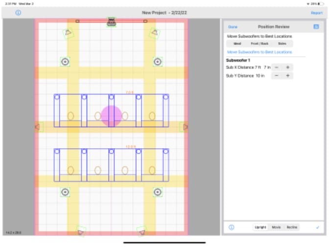 - You can experiment with various sub placements using this tool. You'll notice that yellow zones disappear with various placement choices.