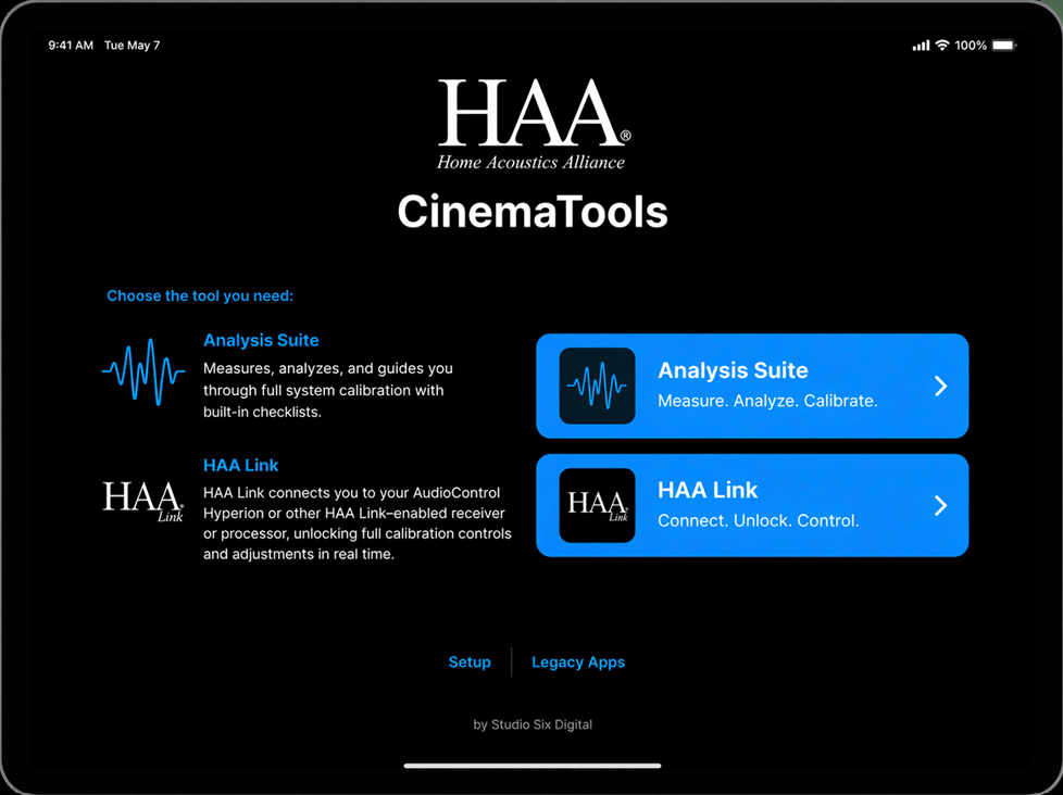 Whether you are setting up a Dolby Atmos system or verifying speaker performance to industry standards, the HAA CinemaTools App with HAA Link (available for iPad on the Apple App Store) gives you the measurement tools you need right to you device.