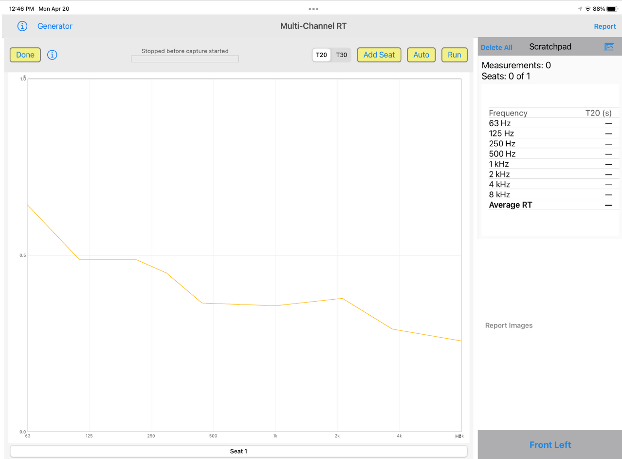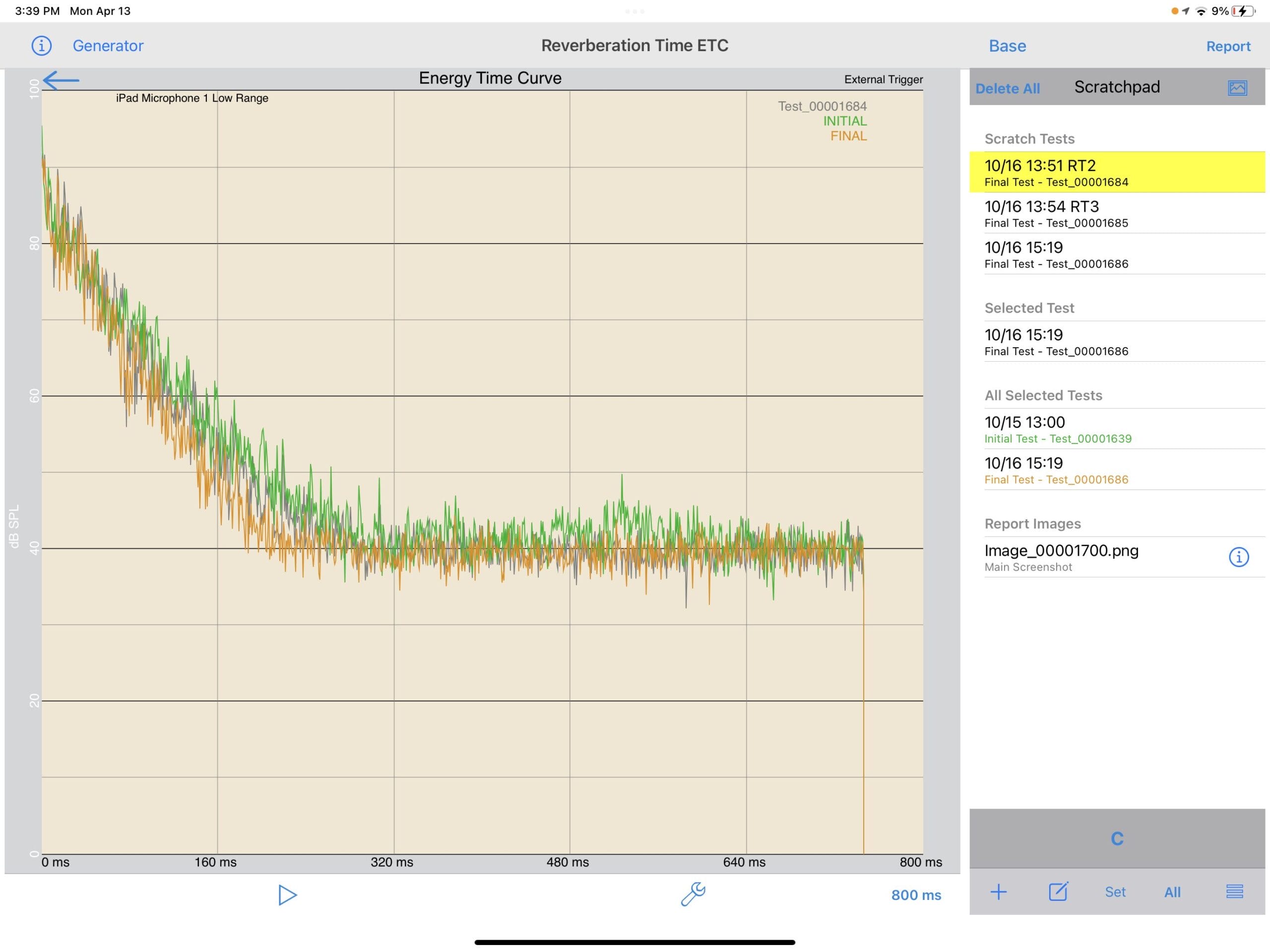 Now you can look at the entire audio spectrum’s reverberation decay. This is a toll specified by CEDIA RP32 for system validation. Fast and easy to complete your calibration report. Click on image for a better view.